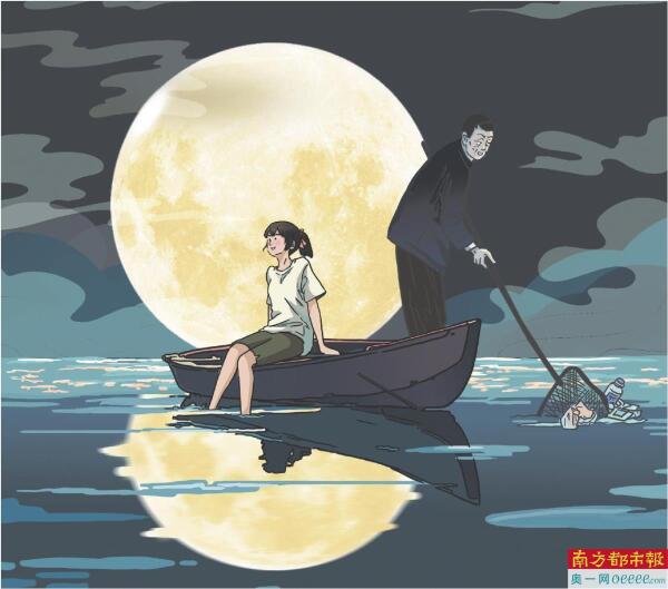 碧波荡漾,渔网撒开,捞起水中的一轮满月。