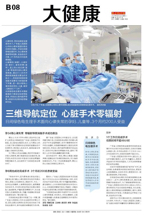 心律失常,孕妇也能安全接受手术了。广东省人民医院心内科心律失常团队联合日间手术团队,开设日间绿色电生理手术,为心律失常患者带来创新、安全的诊疗方案,3个月内近200名患者受益。 心房颤动(房颤)