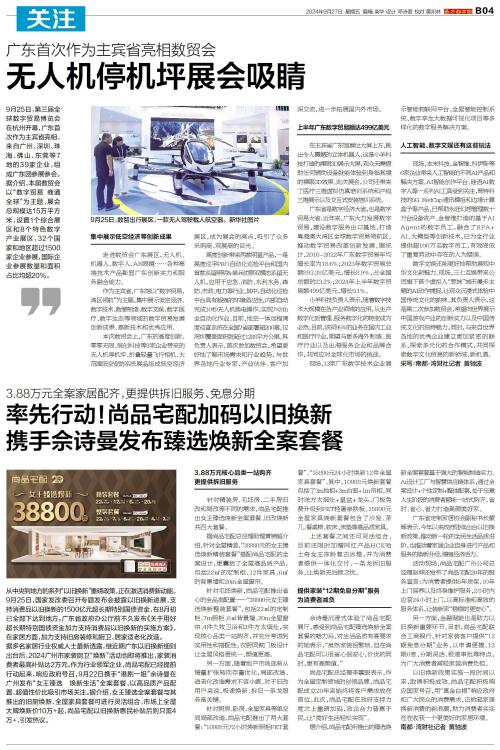 9月25日,第三届全球数字贸易博览会在杭州开幕,广东首次作为主宾省亮相,来自广州、深圳、珠海、佛山、东莞等7地的39家企业,组成广东团参展参会。 据介绍,本届数贸会以“数字贸易 商通全球”为主题