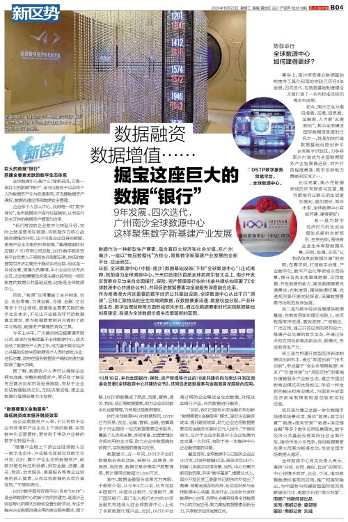 数据作为一种新型生产要素,蕴含着巨大经济和社会价值。在广州南沙,一座以“物品数据化”为核心,聚焦数字新基建产业发展的全新平台,应运而生。 日前,全球数源中心(中国·南沙)数据基础设施(下称“全球