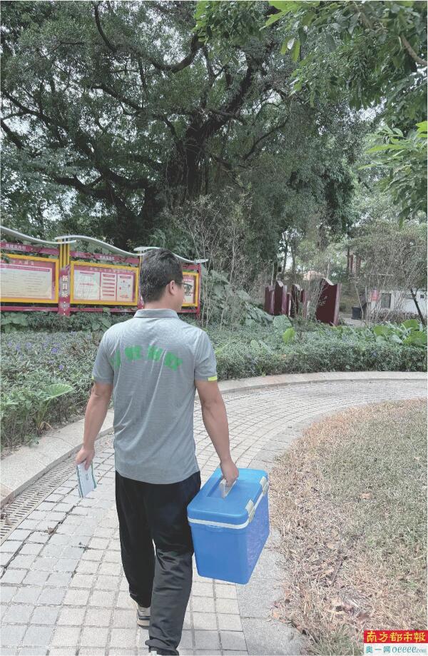 手提保温箱的“以蚊治蚊”团队工作人员正准备释放蚊子。