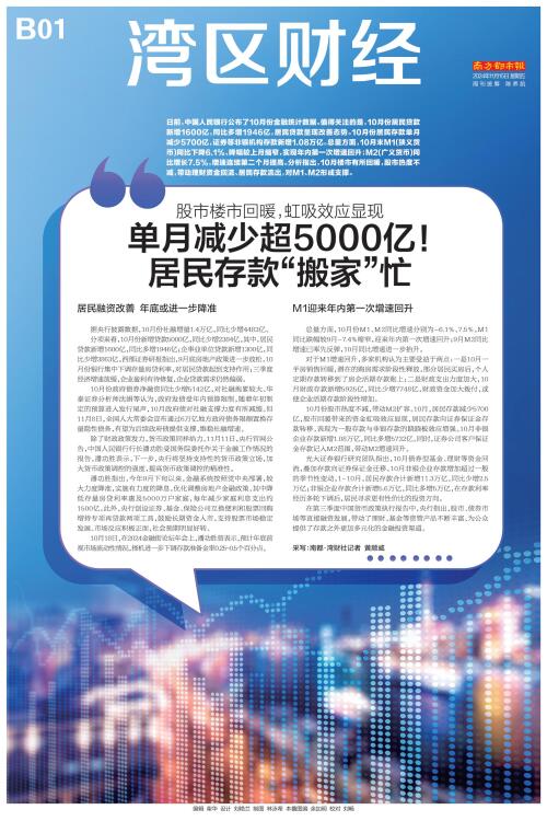 日前,中国人民银行公布了10月份金融统计数据。值得关注的是,10月份居民贷款新增1600亿,同比多增1946亿,居民贷款呈现改善态势。10月份居民存款单月减少5700亿,证券等非银机构存款新增1.