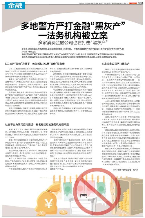 近年来,各类金融机构快速发展,金融服务愈发普及。利益当前,一些不法金融黑灰产机构不断滋生,常打着“化债”等各种幌子,却行诈骗、非吸之实。 南都·湾财社记者了解到,近期多地警方加大对于金融黑灰产的