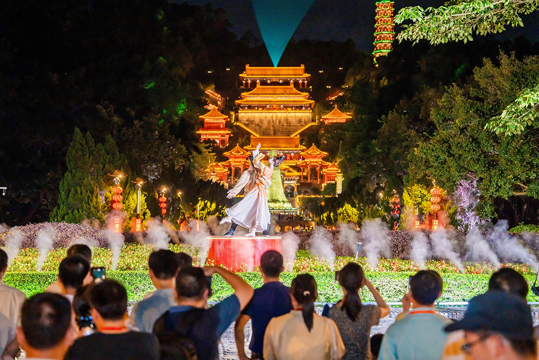 每逢周六,天后宫将延长景区经营时间至22时。游客们可在景区内的天后湖、天后广场欣赏妈祖主题灯光秀、点状式演艺等精彩节目,还可以在天后墟集市体验妈祖文创、粤黔文旅产品、特色美食和非遗技艺。景区还开放夜间宫殿游览,游客可登高至塔层,站在天后宫至高点俯瞰灯火阑珊的珠江口夜色,用不一样的角度感受南沙璀璨的夜魅力。