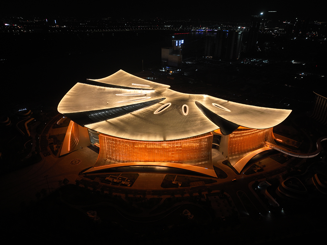 国际金融论坛会议中心和南沙开建岭南东方酒店位于南沙明珠湾横沥岛尖,总建筑面积约25.7万平米,集高端会议、展览、餐饮、住宿功能于一体。建筑外形以“木棉花开,鸿翔海丝”作为设计理念,从天空俯瞰恰似一朵在珠江口迎风绽放的木棉花,瓣瓣不同却瓣瓣同心,象征汇聚湾区之心、花开富贵吉祥之意,也表达了它像海丝纽带般将湾区与世界联系起来的美好愿景。