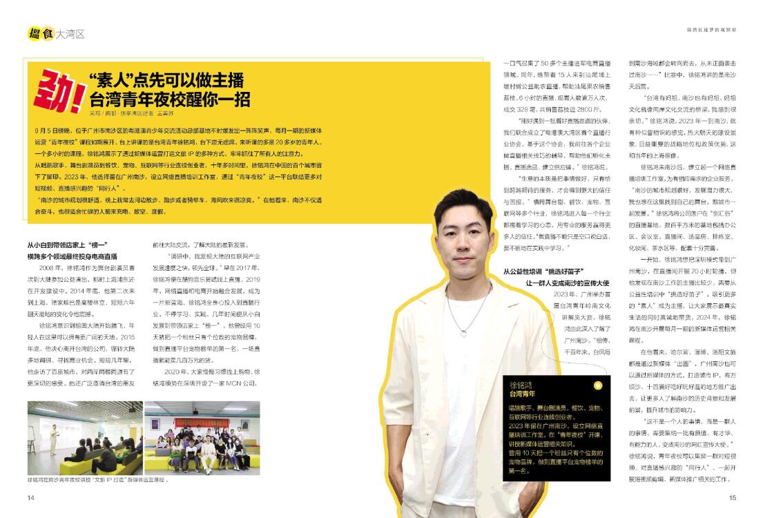 台湾青年徐铭鸿。受访者 供图 徐铭鸿在南沙青年夜校讲授“文旅IP打造”新媒体运营课程。受访者 供图 2023 年,徐铭鸿选择留