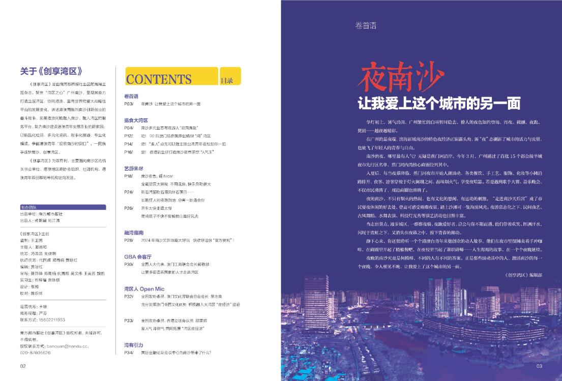 《创享湾区》是由南方都市报社出品的高端主题杂志,聚焦“湾区之心”广州南沙,呈现其奋力打造立足湾区、协同港澳、面向世界的重大战略性平台的发展变化,讲述港澳同胞在南沙创新创业的奋斗故事,拓展港澳同胞融