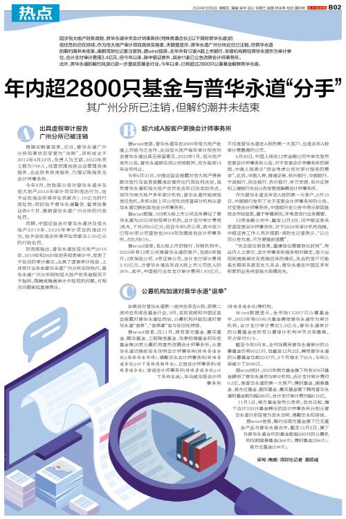 因涉恒大地产财务造假,普华永道中天会计师事务所(特殊普通合伙)(以下简称普华永道)的信任危机仍在持续。作为恒大地产审计项目具体实施者,天眼查显示,普华永道广州分所近日已注销,但普华永道的解约潮并未
