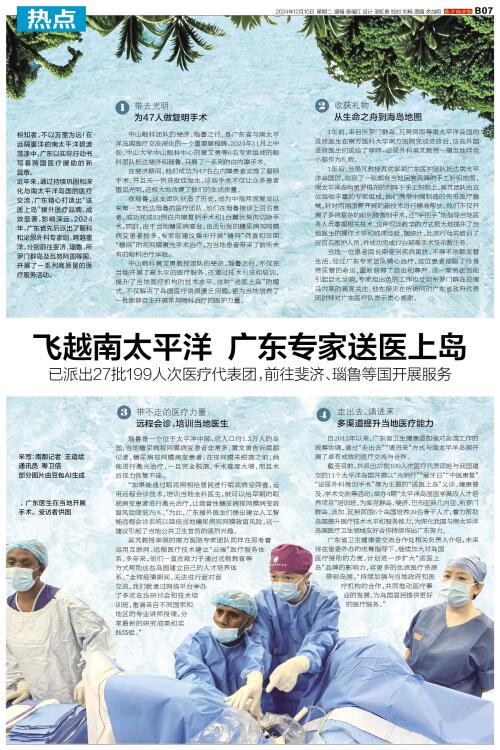 相知者,不以万里为远!在远隔重洋的南太平洋碧波荡漾中,广东以实际行动书写着跨国医疗援助的新篇章。 近年来,通过持续巩固和深化与南太平洋岛国的医疗交流,广东精心打造出“送医上岛”援外医疗品牌,成效