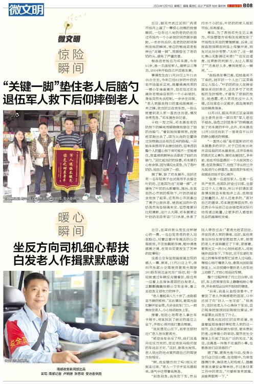 暖心瞬间 近日,在深圳街头发生这样暖心的一幕。一名白发苍苍的老人站在路边,对着正要开车离去的公交驾驶员,不住地鞠躬作揖,眼中满是感激之情。在背后究竟发生了怎样的故事呢? 这是公交车监控画面里出