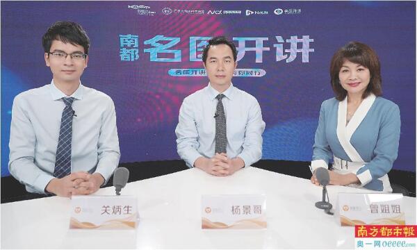 暨南大学附属第一医院副院长、主任医师杨景哥(中),暨南大学附属第一医院胃肠外科主治医师关炳生(左)与主持人曾姐姐(右)