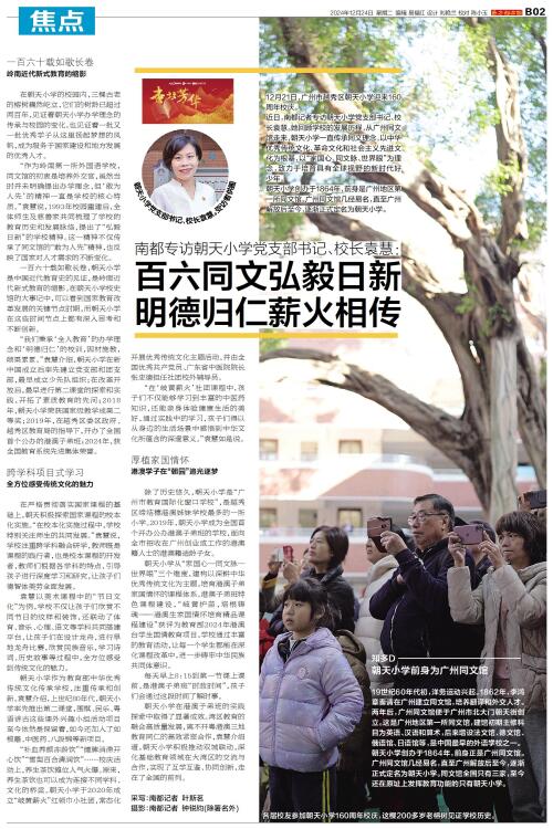 12月21日,广州市越秀区朝天小学迎来160周年校庆。 近日,南都记者专访朝天小学党支部书记、校长袁慧。她回顾学校的发展历程,从广州同文馆走来,朝天小学一直传承同文理念,以中华优秀传统文化、革命