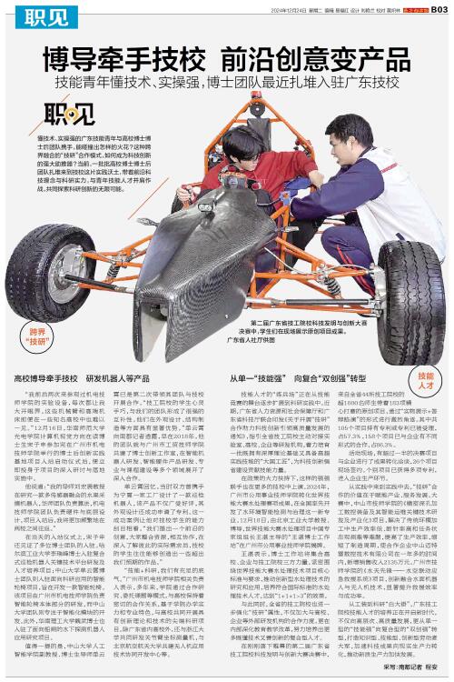 懂技术、实操强的广东技能青年与高校博士博士后团队携手,能碰撞出怎样的火花?这种跨界融合的“技研”合作模式,如何成为科技创新的强大助推器?当前,一批批高校博士博士后团队扎堆来到技校这片实践沃土,带着