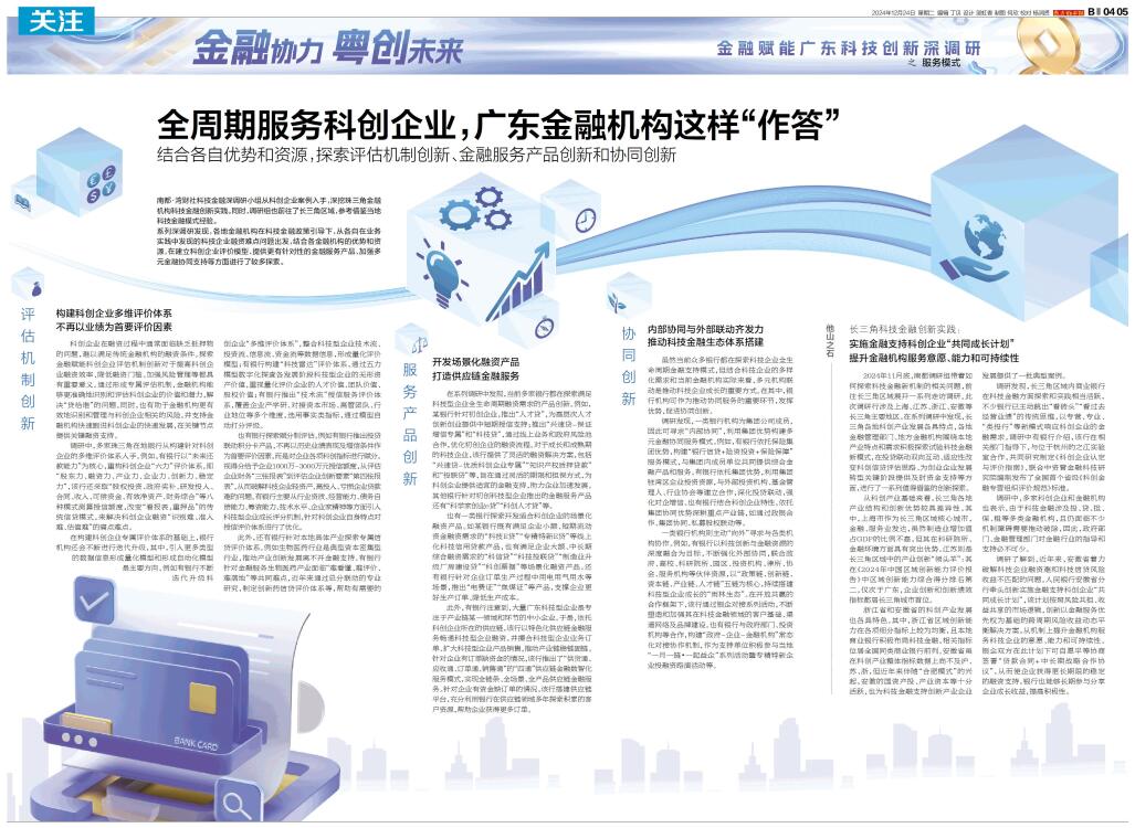 南都·湾财社科技金融深调研小组从科创企业案例入手,深挖珠三角金融机构科技金融创新实践。同时,调研组也前往了长三角区域,参考借鉴当地科技金融模式经验。 系列深调研发现,各地金融机构在科技金融政策引