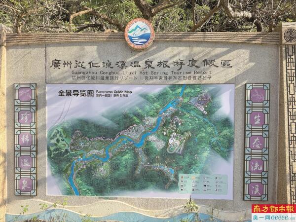 流溪温泉广场上可以看到新温泉区域全景导览图。
