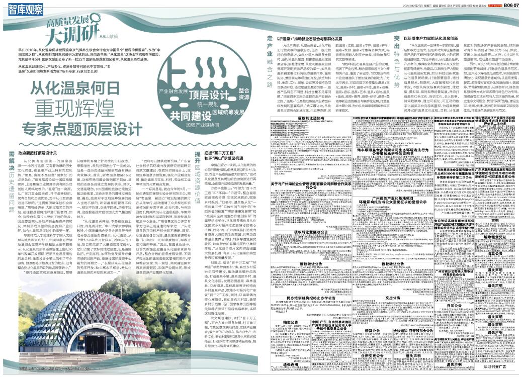 从化之献策 早在2010年,从化温泉便被世界温泉及气候养生联合会评定为中国首个“世界珍稀温泉”。作为“中国温泉之都”,从化在明清时就已被列为游览胜地。然而近年来,“从化温泉”这块金字招牌有所暗淡