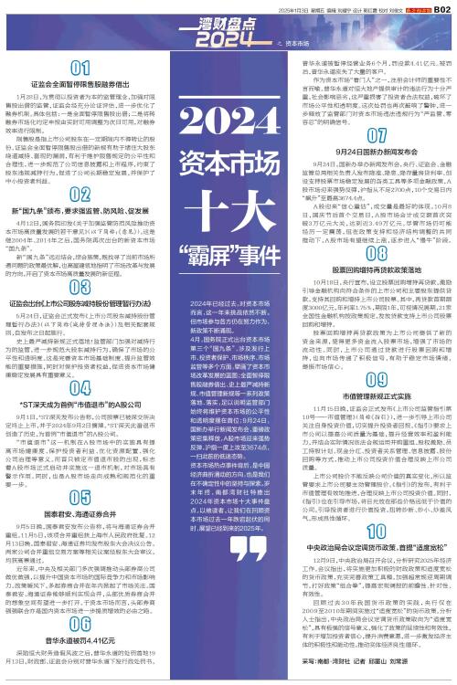 资本市场 2024年已经过去。对资本市场而言,这一年来挑战依然不断。但市场参与各方仍在努力作为,新政策不断涌现。 4月,国务院正式出台资本市场第三个“国九条”,涉及发行上市、投资者保护、市场秩