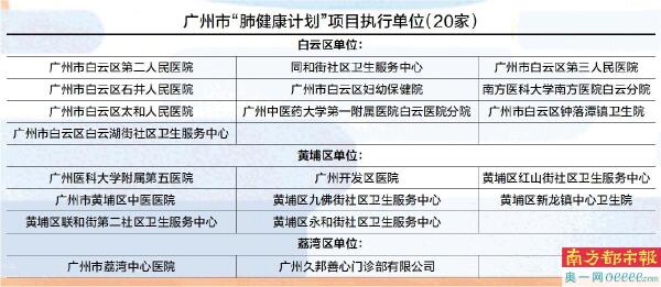 2024年开始,广州白云区、黄埔区、荔湾区的20家医疗单位已经参与了“肺健康计划”项目。目前,广州这三个区的40-74岁居民(常住人口和户籍人口)仍可到20家单位预约免费CT筛查。但也有一些人群不适合进行CT检查,比如孕产妇及哺乳期女性、3个月内执行过CT检查的人群、本身患有肿瘤等禁忌疾病的人群。