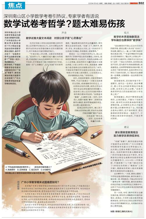 深圳市南山区小学生数学考卷成为期末家长群最热话题,广州市各区的小学期末考试难度如何?不少网友在看完这份四年级数学期末试卷后,表示不淡定了,“这是语文老师出的数学试卷吧?”“学