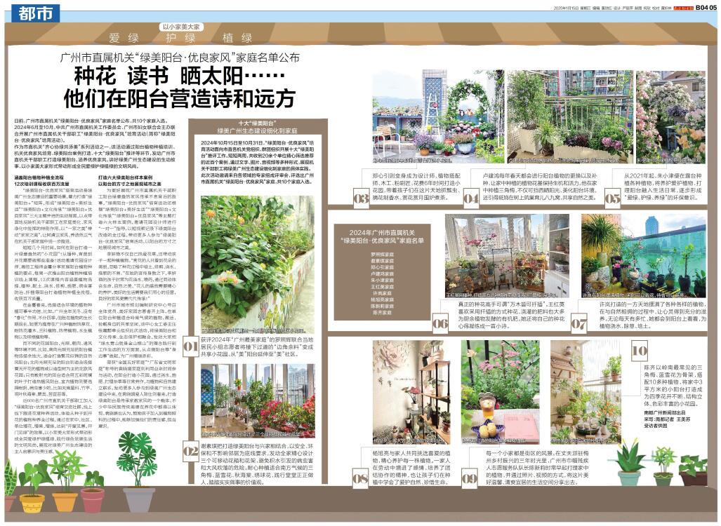 日前,广州市直属机关“绿美阳台·优良家风”家庭名单公布,共10个家庭入选。 2024年6月至10月,中共广州市直属机关工作委员会、广州市妇女联合会主办联合开展广州市直属机关干