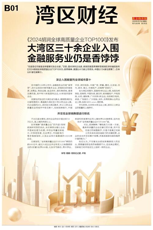 大湾区三十余企业入围 金融服务业仍是香饽饽