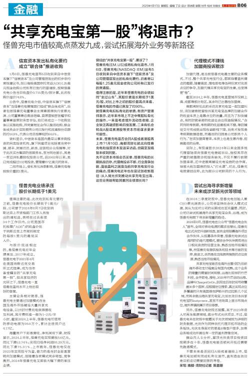 曾经的“共享充电宝第一股”,要凉了? 怪兽充电(EM.US)或将私有化退市。1月6日,怪兽充电(NASDAQ:EM)宣布5日收到来自中信资本旗下“信宸资本”及公司管理层发出的私有化要约,后者将以