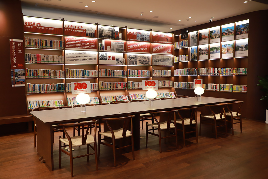 该分馆坐落于南沙区明珠湾灵山岛水舞广场,地理位置优越、风光景色绝佳,场地建筑面积为60平方米,藏书为3000余册(其中红色书籍1000余册)。