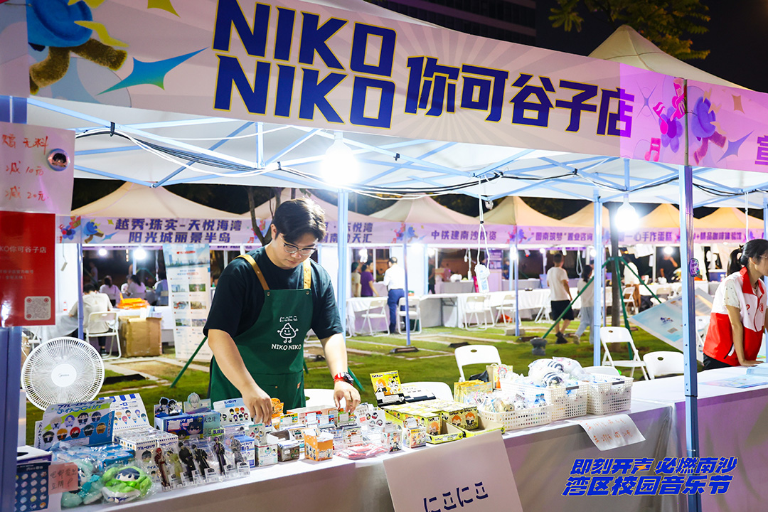 市集入口,青浪书店的摊位最为引人注目。该书店是南沙当地一家集书籍、文创、咖啡、手作、讲座于一体的独立书店,其主创人创立书店之时,旨在探寻属于南沙人温暖、多元化的公共空间。此次摊位上,青浪书店带来了各式文创产品,向初到当地的歌迷介绍南沙特色。
