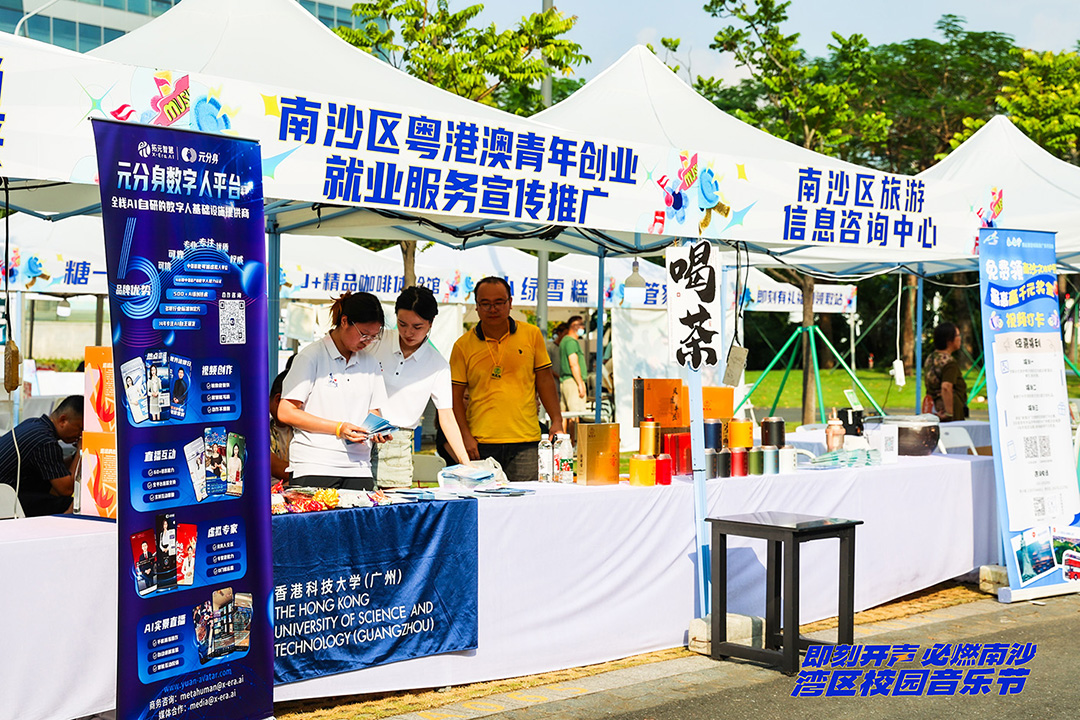 活动现场,南沙街道特别针对大学生群体设立了南沙区人社局优化打造的粤港澳青年创业就业综合服务平台《“图南筑梦”方案》咨询专区,为大学生详细解答南沙区《“图南筑梦”方案》中的各项优惠政策。来自香港科技大学(广州)的杨同学,是该咨询区的一名工作人员。