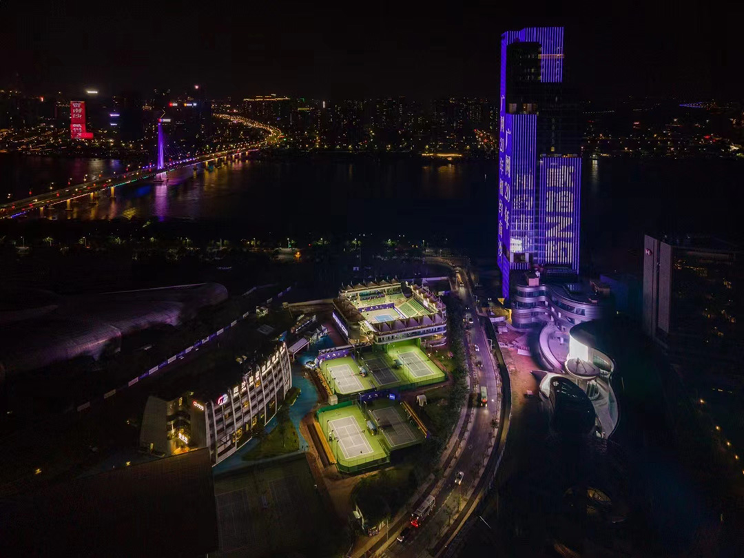 夜色中的南沙国际网球中心,美丽迷人。赛事主办方供图