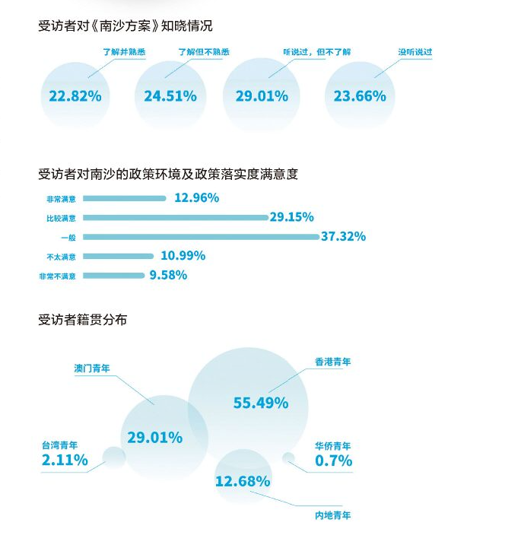 从广州市到南沙区,各个不同职能单位通过多种方式,持续深化《南沙方案》等的宣传力度,推动南沙区相关政策知晓度不断提升。受访者中,超过542人知道《南沙方案》,占比超过50%。受访者中,有超过50%的人对南沙的政策环境及政策落实度表示满意。除了地理位置优势,吸引港澳青年到访南沙的因素中,政策支持到位,占66.34%;认为就业机会多发展空间大,占57.32%;其次则是营商环境好以及创业成本低。这些也是吸引港澳青年到南沙发展的原因。