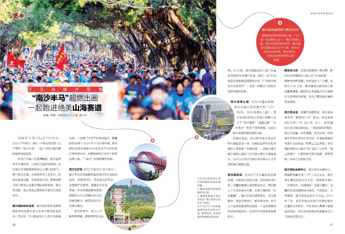 15000名跑者从南沙国际邮轮母港燃情开跑。活动主办方供图 赛道途经标志性的明珠湾大桥。活动主办方供图 赛道串联起了南沙天后宫、南沙滨海公园等多个点位。