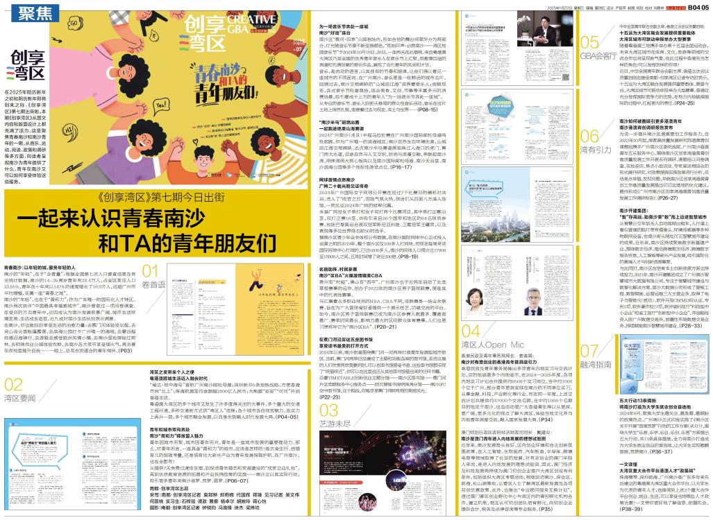 在2025年阳历新年之初和阴历新年即将到来之际,《创享湾区》第七期出街啦。本期《创享湾区》从图文内容和版面设计上都充满了活力。这是聚焦青春南沙和南沙青年的一期,从音乐、运动、阅读、政策和调研等多方
