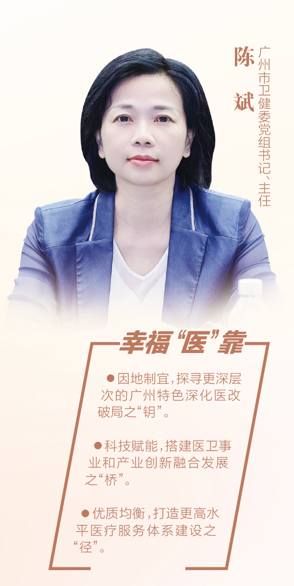 陈斌:改革没有现成的模板和范式,只有敢闯敢试的魄力和担当。一年来,广州深入推广三明医改经验,抓实国家公立医院改革与高质量发展示范项目,打造消化、妇幼、精神、传染病、中医针灸五大专病示范体系。以公益性为核心导向,推动公立医院改革不断深化,同时积极运用智慧化手段,优化就医流程,为市民提供更优质、便捷的医疗服务。