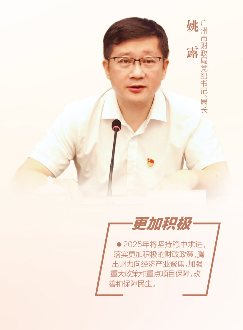 姚露:中央经济工作会议提出了做好2025年经济工作的政策基调和工作要求,释放了宏观政策将更加积极有为的信号,这充分体现了党中央对于推动经济持续回升向好、提振市场信心和预期的决心。加上随着全面深化改革释放发展红利,粤港澳大湾区协同发展全面推进,为广州发展提供了有利条件,经济发展积极因素不断积累。但也要看到外部环境影响加深,新旧动能转换,仍对财政收入增收形成一定制约,同时重点领域增支需求较大,2025年全市财政收支“紧平衡”特征更加明显。