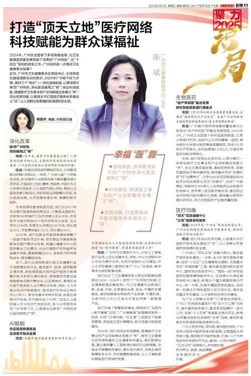 2024年,广州在全国拿下多项亮眼成绩,为卫生健康高质量发展贡献了宝贵的“广州经验”。在“十四五”规划的收官之年,广州如何进一步推动卫生健康事业发展? 近日,广