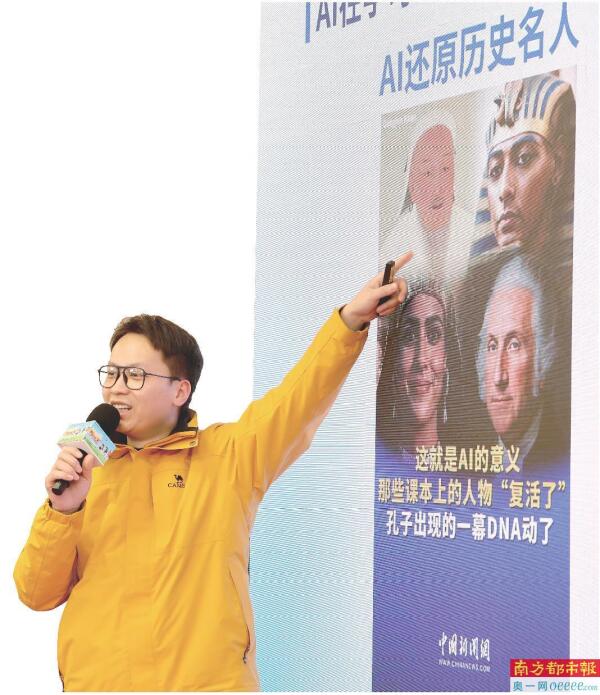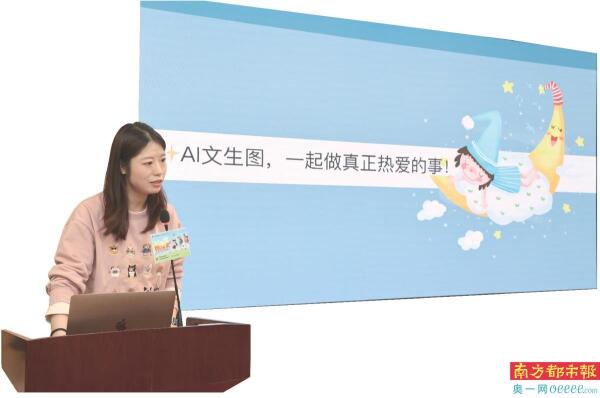 南方都市报社湾区视频新闻部传播策划李豪为学生们讲解AI创作的应用。