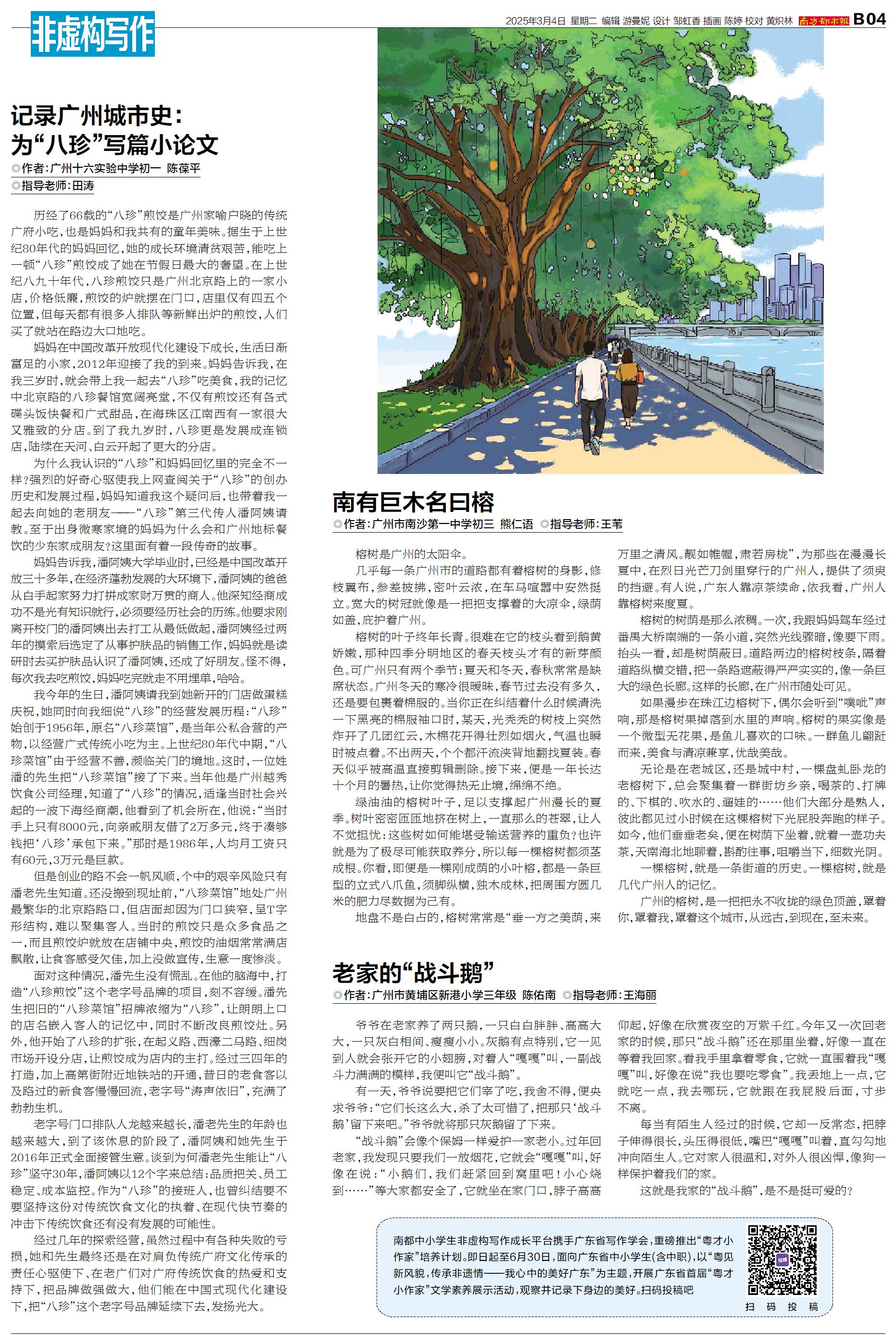 南都中小学生非虚构写作成长平台携手广东省写作学会,重磅推出“粤才小作家”培养计划。即日起至6月30日,面向广东省中小学生(含中职),以“粤见新风貌,传承非遗情——我心中的美好广东”为主题,开展广东