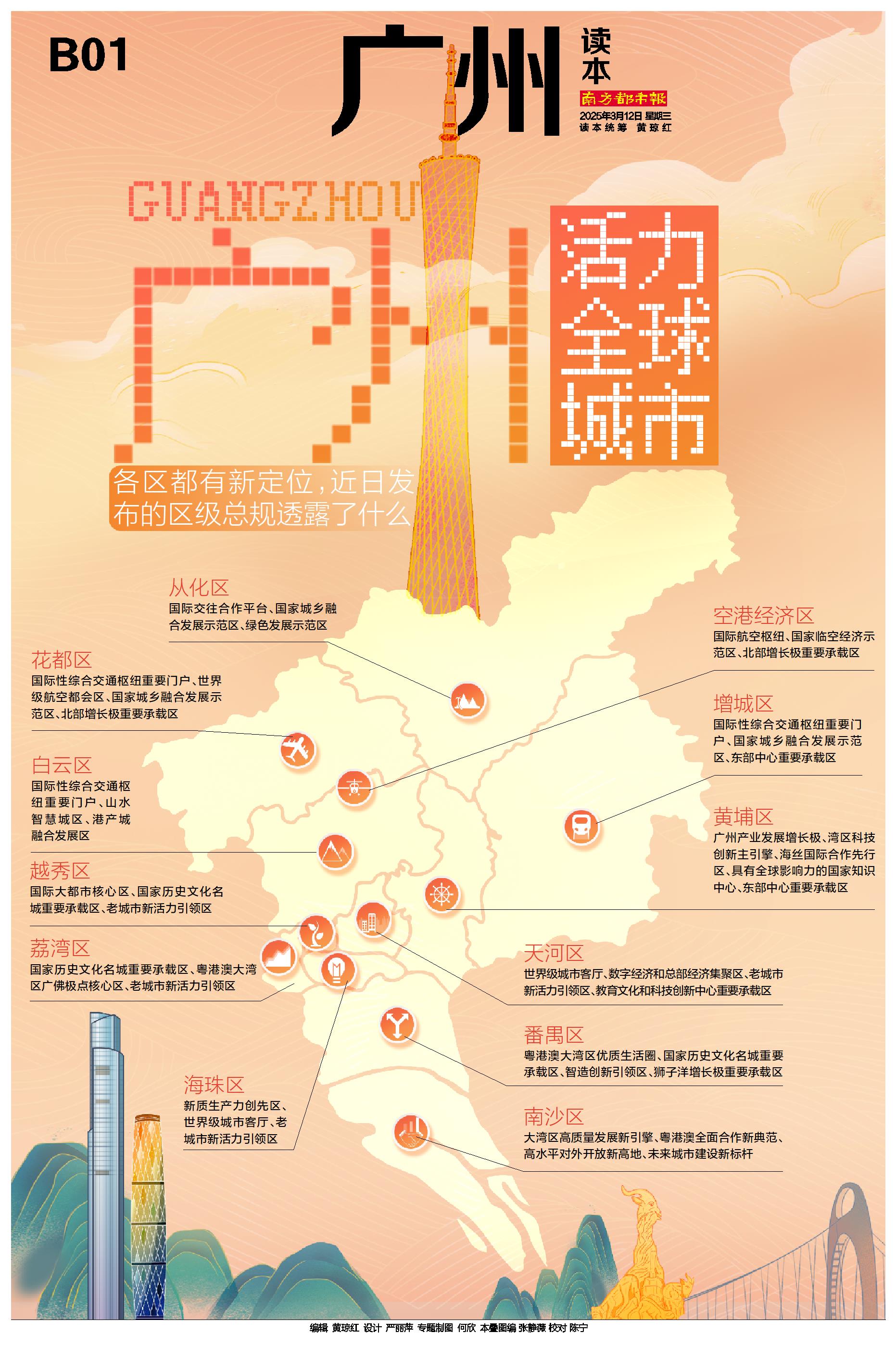 天河区 世界级城市客厅、数字经济和总部经济集聚区、老城市新活力引领区、教育文化和科技创新中心重要承载区 越秀区 国际大都市核心区、国家历史文化名城重要承载区、老城市新活力引领区 海珠区