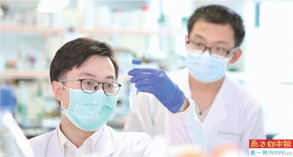 中山大学附属第一医院王骥(左)研究员表示,新型佐剂将抗原精准导航到内质网,可更好地提升疫苗安全性。 通讯员供图