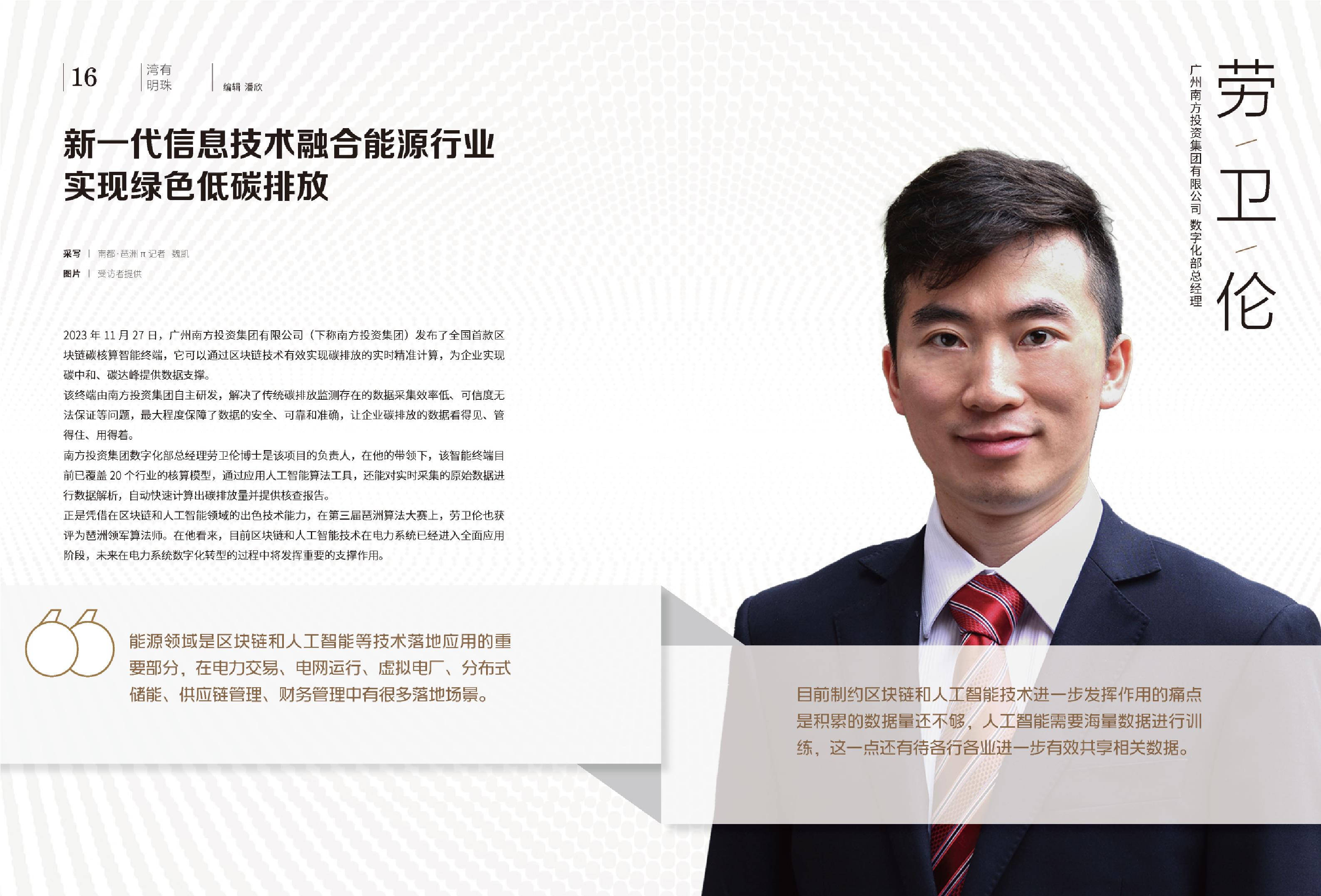 劳卫伦 广州南方投资集团有限公司数字化部总经理 采写丨南都·琶洲π记者 魏凯 图片丨受访者提供 人物名片: 劳卫伦
