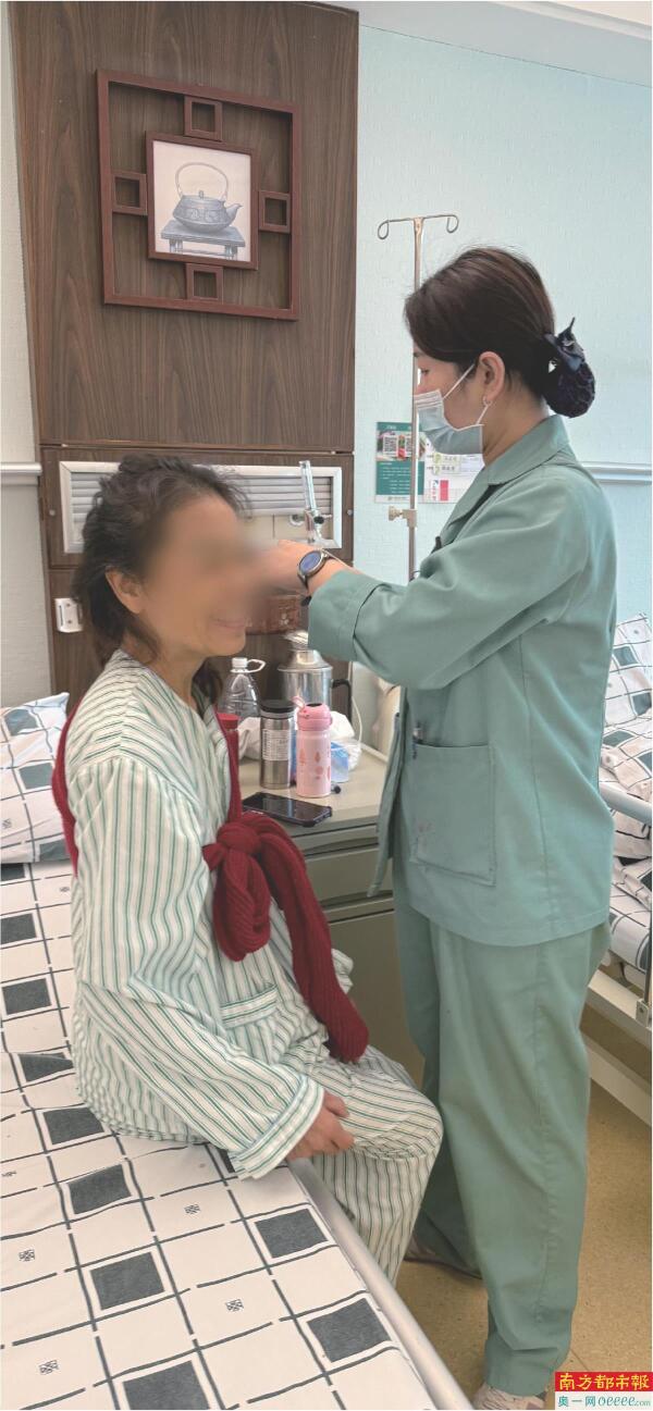 68岁的乳腺癌患者黄女士最初对“无家属陪护”心存疑虑,但入院后,护理员不仅协调定制软烂餐食,还通过“火龙罐”中医疗法改善其失眠症状。护士长更主动带她观摩其他患者的照护实景,用病友亲身经历打消顾虑。“比家人照顾得更专业、更贴心!”黄女士出院时感慨。另一名术后患者梁女士则通过护理员的每日视频连线,让女儿远程参与康复进程,“既不影响她照顾外孙,又能让我安心治疗”。
