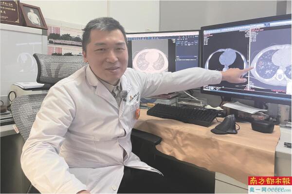 珠江医院影像诊断科副主任医师王显龙展示AI在阅片系统中的应用。 通讯员供图