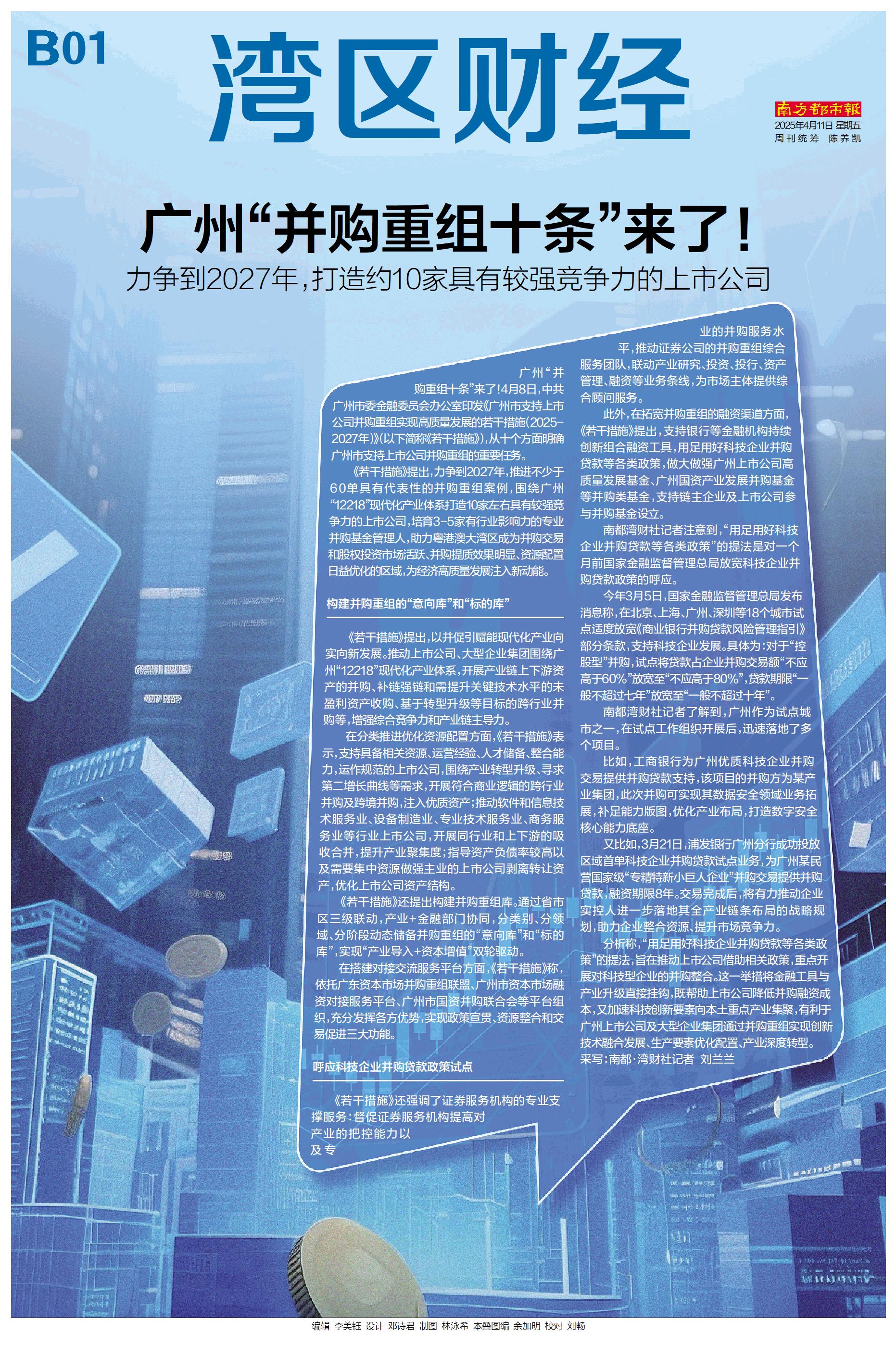 广州“并购重组十条”来了!4月8日,中共广州市委金融委员会办公室印发《广州市支持上市公司并购重组实现高质量发展的若干措施(2025-2027年)》(以下简称《若干措施》),从十个方面明确广州市支持