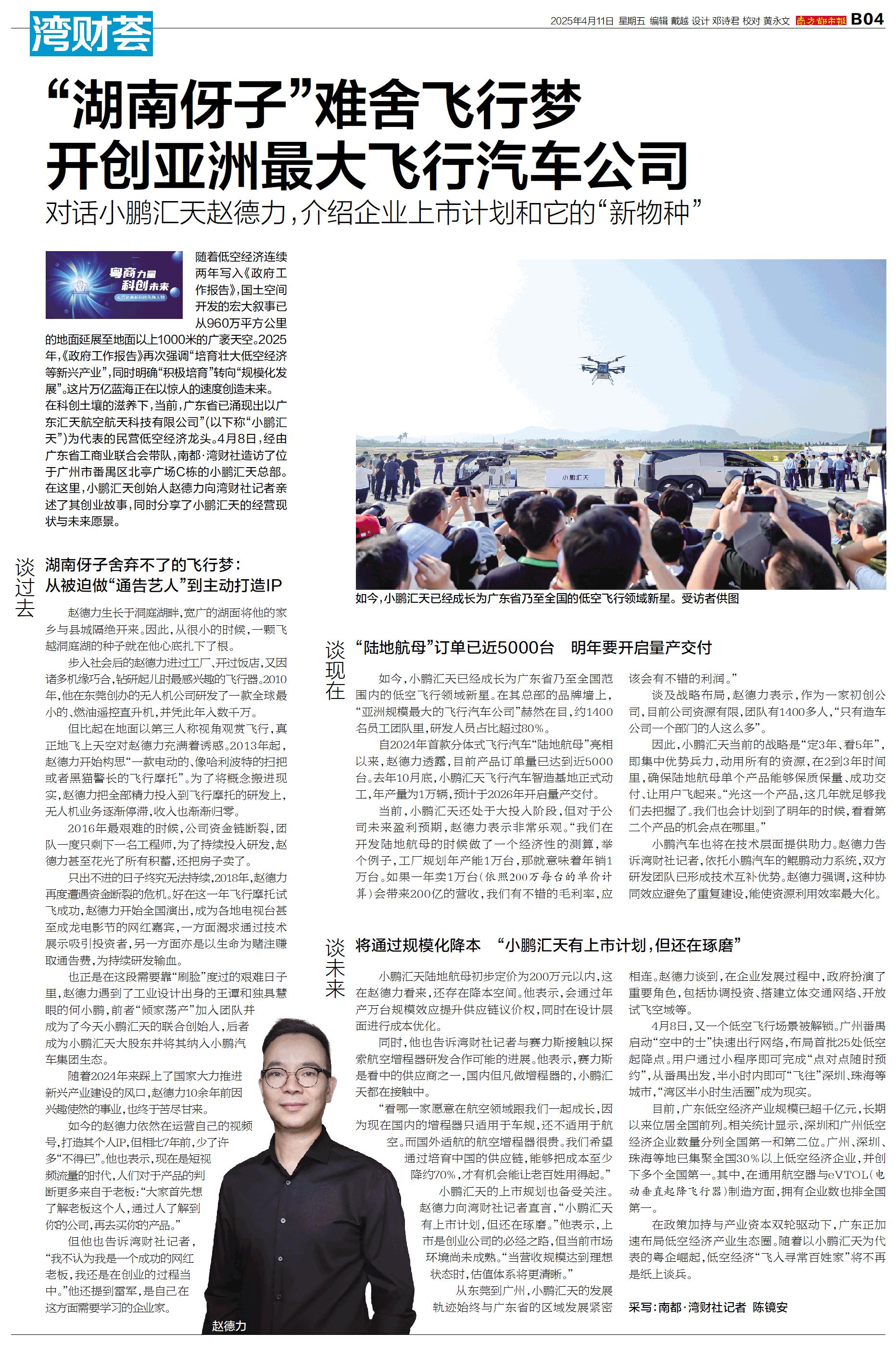 “湖南伢子”难舍飞行梦 开创亚洲最大飞行汽车公司