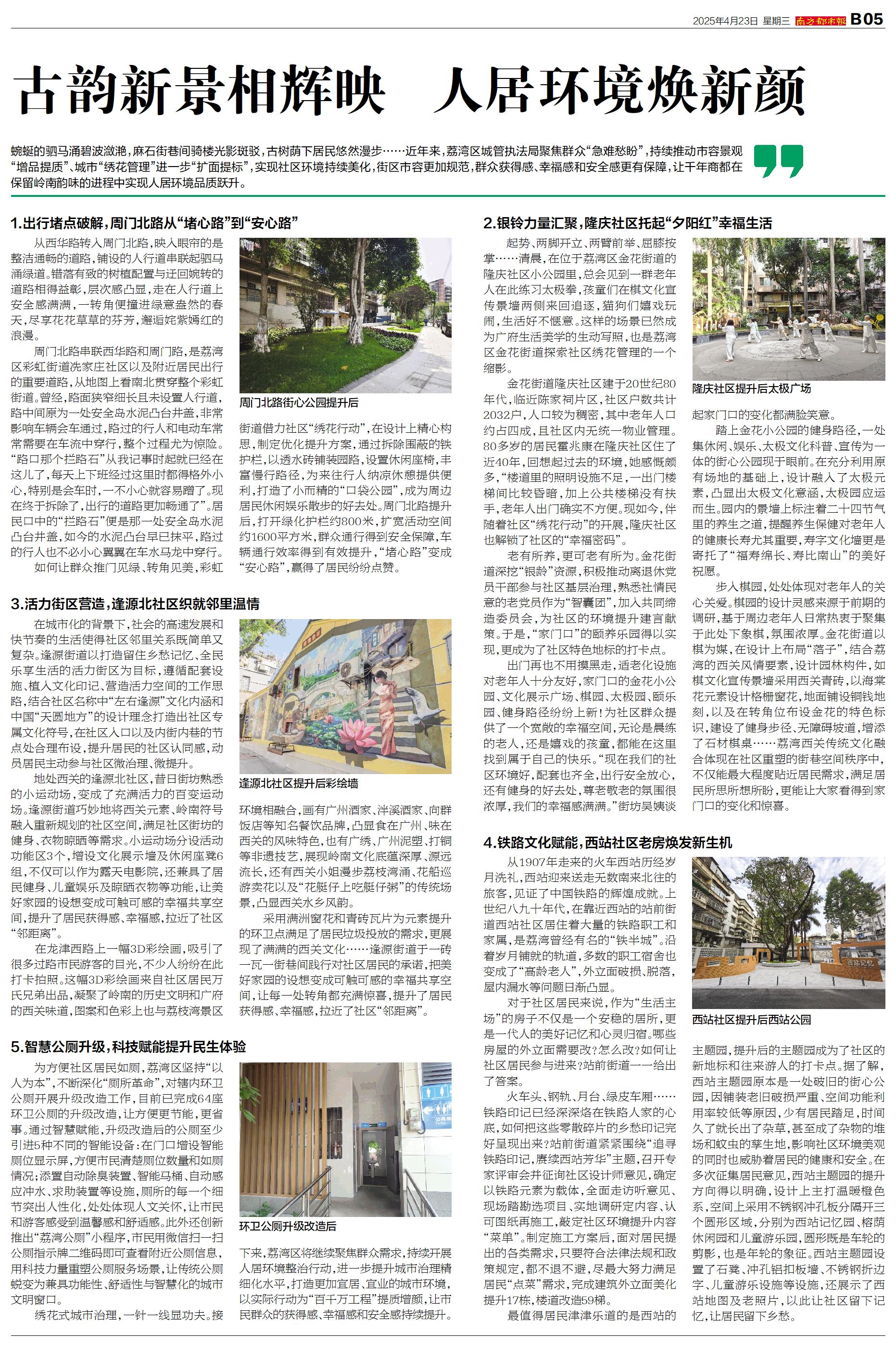 蜿蜒的驷马涌碧波潋滟,麻石街巷间骑楼光影斑驳,古树荫下居民悠然漫步……近年来,荔湾区城管执法局聚焦群众“急难愁盼”,持续推动市容景观“增品提质”、城市“绣花管理”进一步“扩面提标”,实现社区环境持