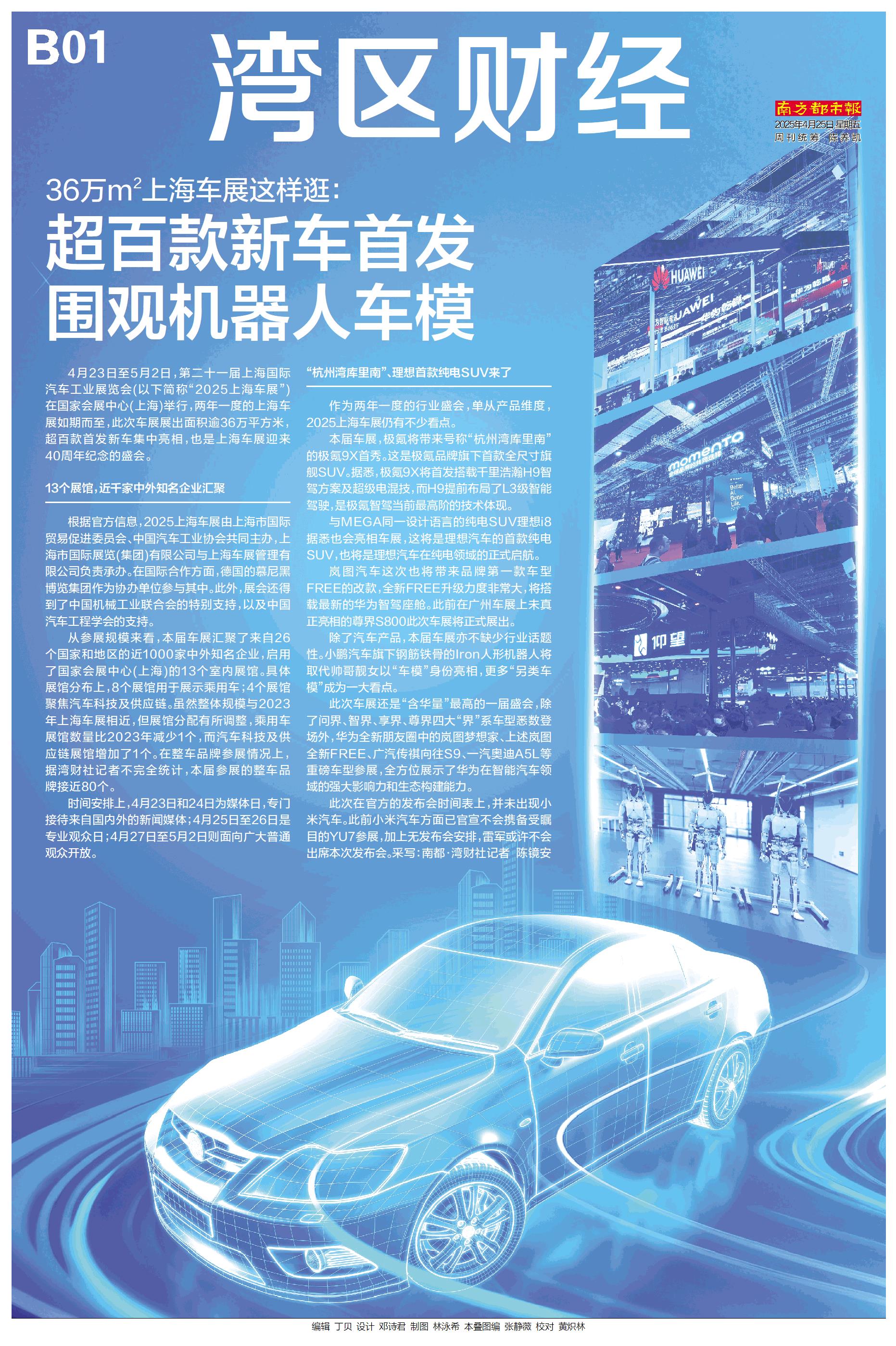 4月23日至5月2日,第二十一届上海国际汽车工业展览会(以下简称“2025上海车展”)在国家会展中心(上海)举行,两年一度的上海车展如期而至,此次车展展出面积逾36万平方米,超百款首发新车集中亮相