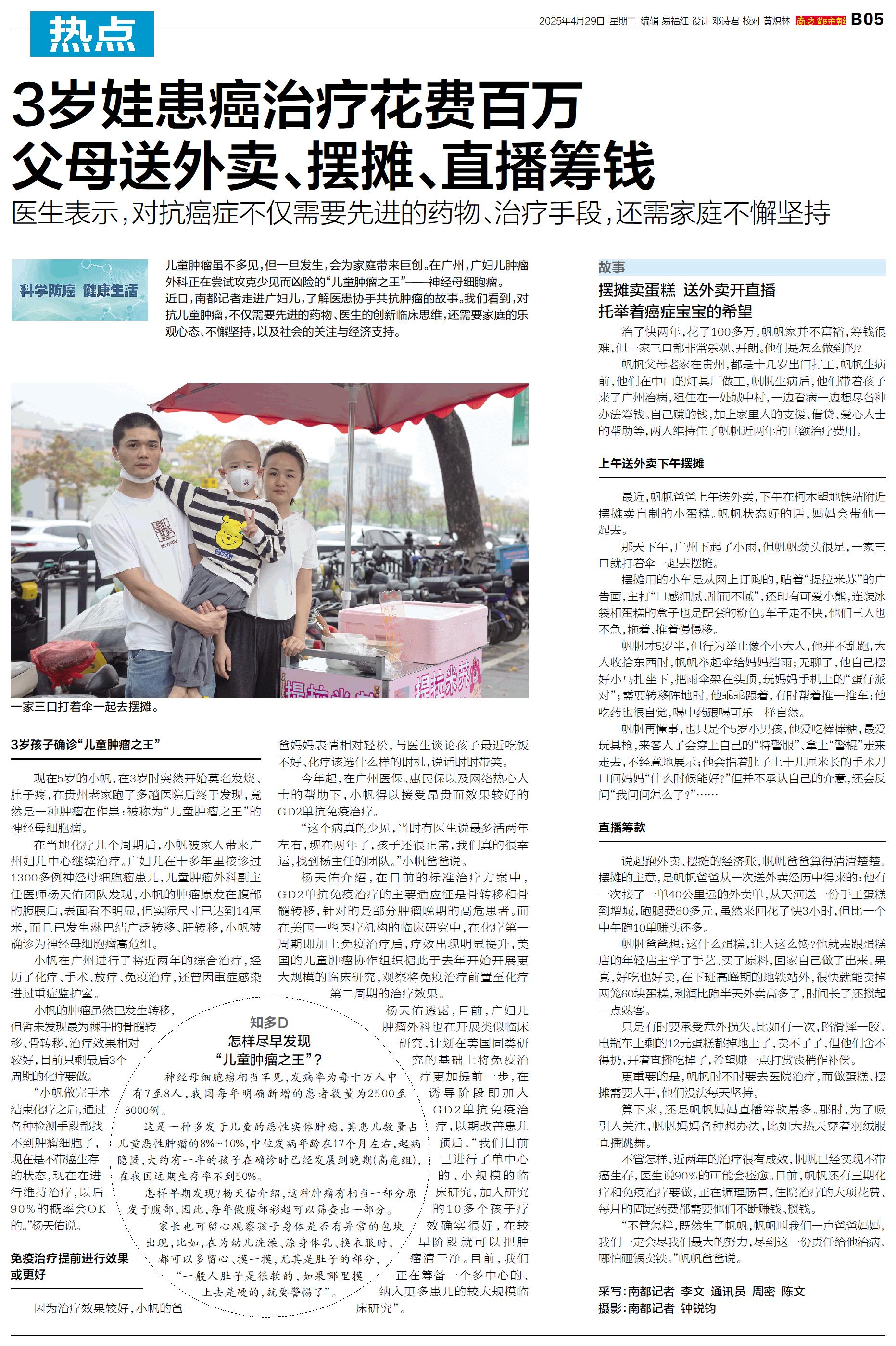3岁娃患癌治疗花费百万 父母送外卖、摆摊、直播筹钱