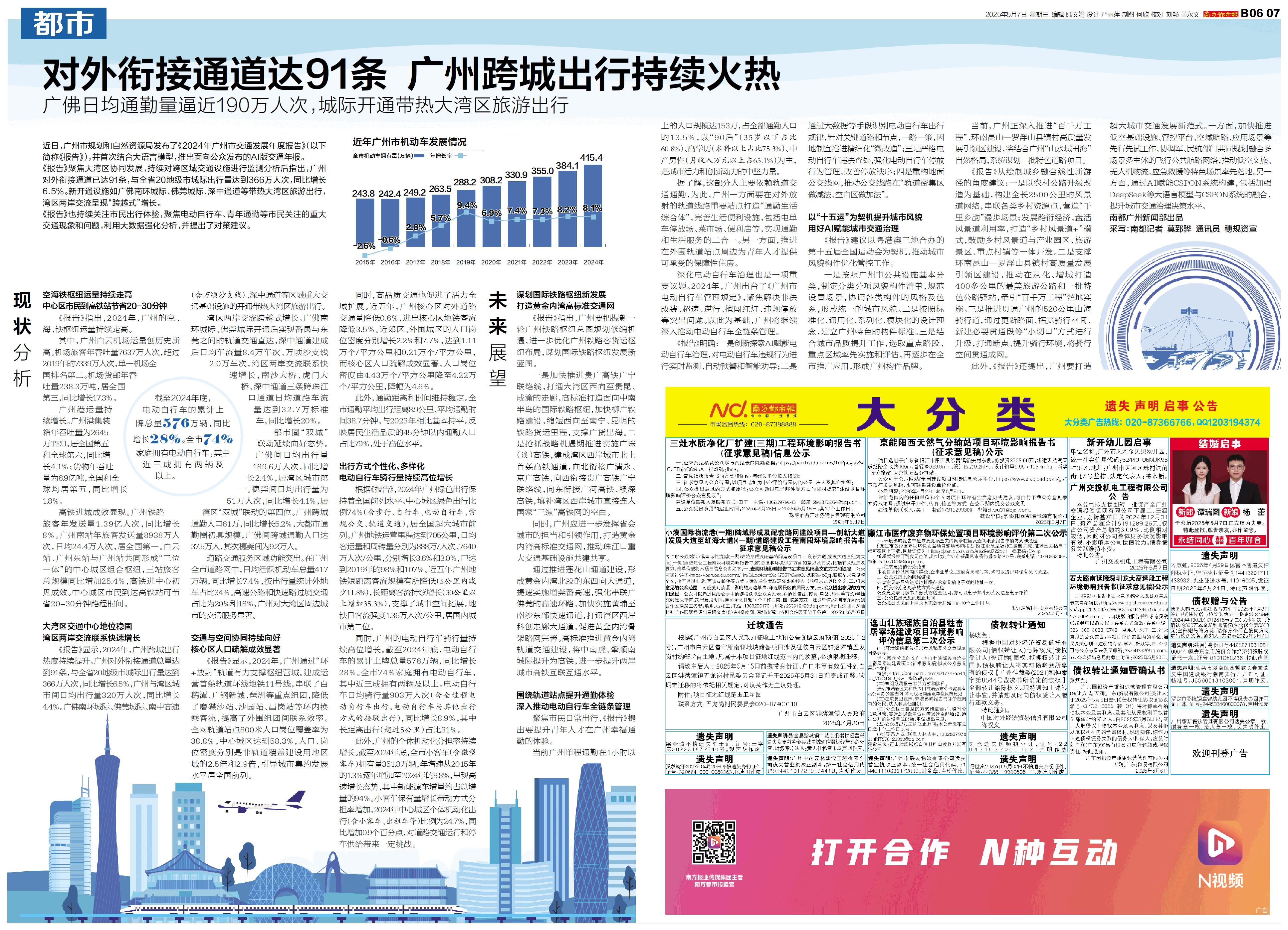 近日,广州市规划和自然资源局发布了《2024年广州市交通发展年度报告》(以下简称《报告》),并首次结合大语言模型,推出面向公众发布的AI版交通年报。 《报告》聚焦大湾区协同发展,持续对跨区域交通
