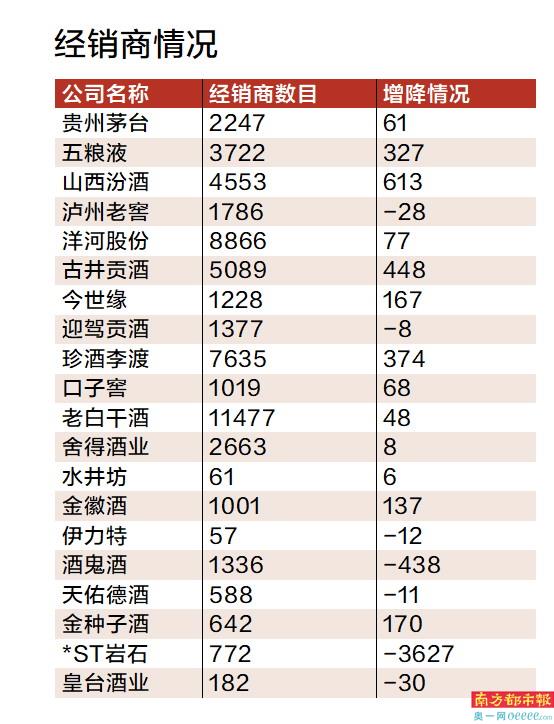 而不少区域酒企由于全国化拓展的需要,经销商数量也在持续增加。比如古井贡酒、今世缘等企业,其中,古井贡酒在华北地区及华南地区的经销商数量分别增加了136家、68家;今世缘去年省外经销商也增加了53家。